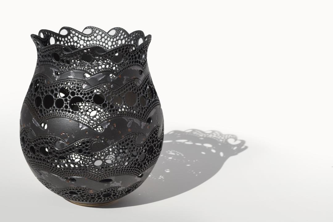 Jill FordPorcelain vases, bowls and tall standing forms thrown on the wheel, decorated with rich textural surfaces. Web: jillford.com |