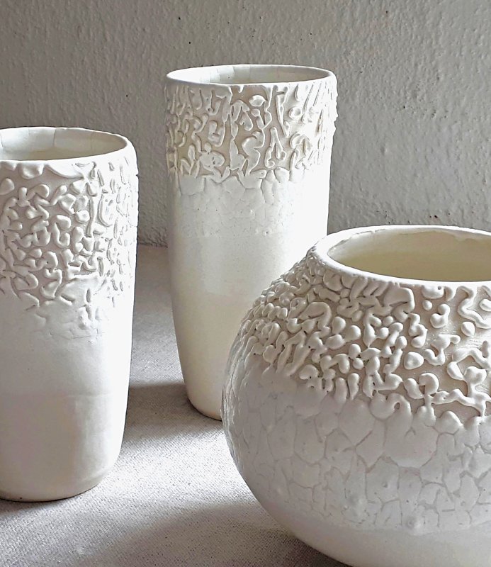 Trudy WeirSlab built vessels with unique unglazed slip decoration. Web: www.trudyweir.co.uk |